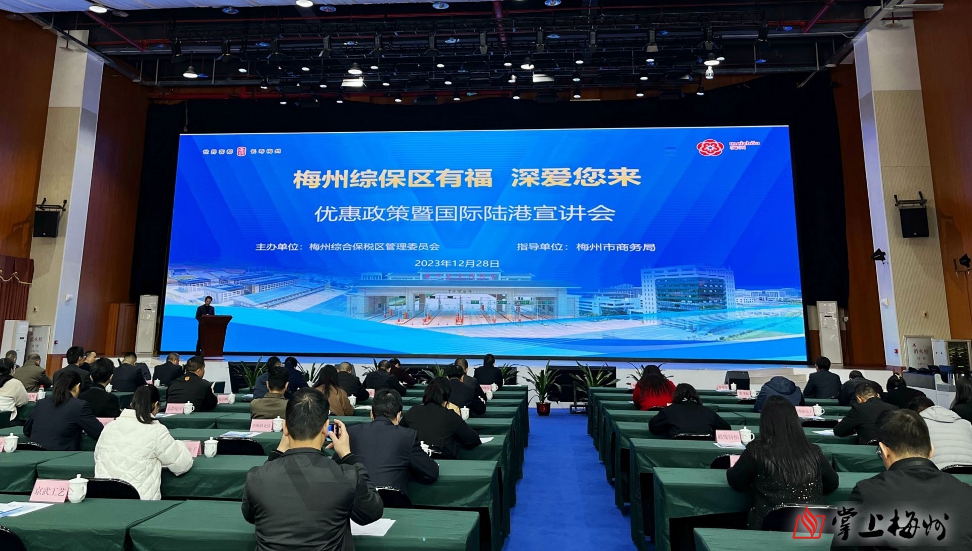 掌上梅州訊 12月28日上午,在梅州國際陸港掛牌暨“梅州-鹽田”海鐵聯運班列首發儀式后,梅州綜保區管委會聯合梅州市商務局在梅州高新區綠創中心舉行梅州綜保區優惠政策和梅州國際陸港宣講會。