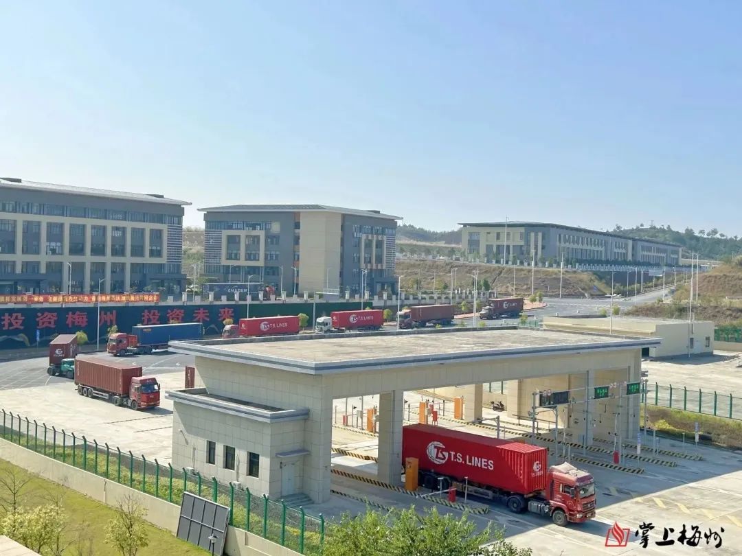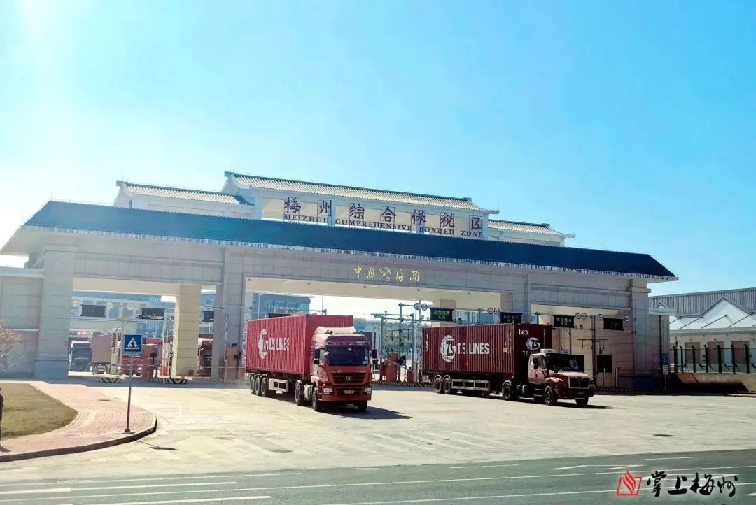 1月4日,17輛集裝箱貨柜車在經過海關卡口系統自動驗核后有序駛入梅州綜保區,整個通關過程用時不到10分鐘,非常高效順暢,全程“零接觸”放行。