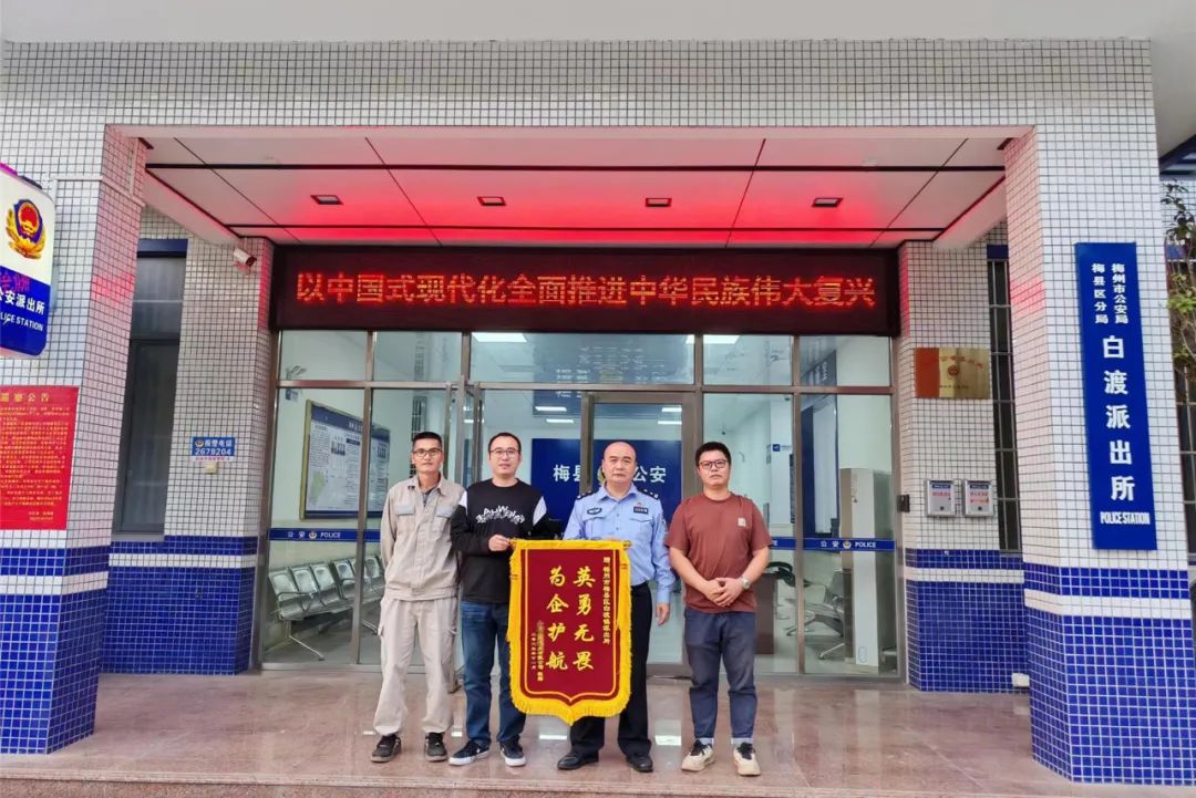 11月10日下午,某電業(yè)公司員工一行來到白渡派出所,將一面印有“英勇無畏 為企護(hù)航”的錦旗送到民警手上,感謝該所民輔警護(hù)航重點(diǎn)工程建設(shè),服務(wù)企業(yè)付出的艱辛和努力。