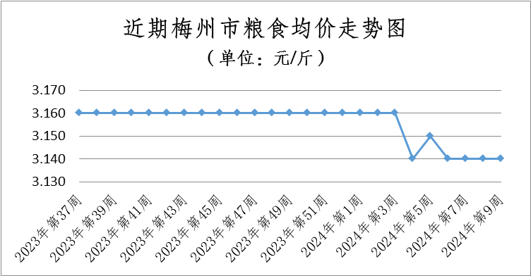 糧油價格穩中微降。本周糧食均價為3.14元/斤,環比(與2024年第8周相比,下同)持平;食用油均價為95.42元/桶(5L),環比下降0.04%。