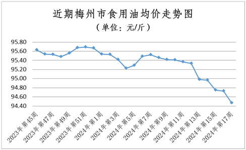 糧油價格以穩為主。本周糧食均價為3.15元/斤,環比(與2024年第16周相比,下同)上升0.32%;食用油均價為94.47元/桶(5L),環比下降0.27%。