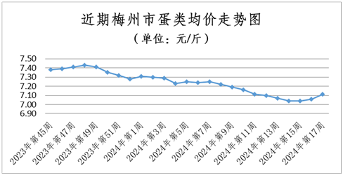 禽蛋價格互有升降。監測的禽類均價18.76元/斤,環比下降0.37%;蛋類均價7.11元/斤,環比上升0.71%。