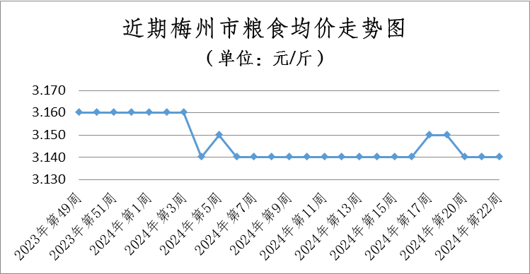 糧油價格保持穩定。本周糧食均價為3.14元/斤,環比(與2024年第21周相比,下同)持平;食用油均價為94.73元/桶(5L),環比上升0.1%。