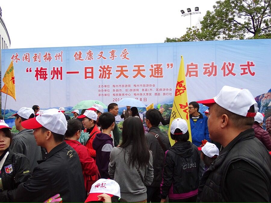 8日上午,由梅州市旅游局和市旅游協會主辦、梅旅散客中心承辦的“梅州一日游天天通”活動啟動儀式在梅江區亮勝客家藝術中心隆重舉行。梅州市旅游局局長朱瑛及各縣(市、區)旅游局主要負責人、城區各大旅行社、酒店等旅游企業代表、首批參加梅州一日游的300多位游客共同參加了啟動儀式。啟動儀式后,首發團將第二屆客家文化創意博覽會作為首站,游客們逛完文博會后乘車前往各景區。