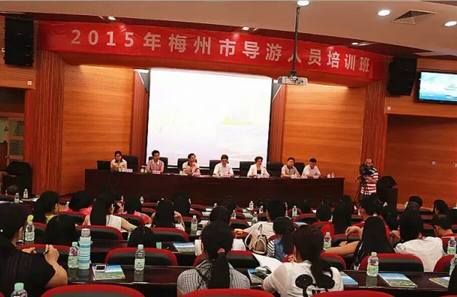 9月29日上午,2015年全市導游人員培訓班在市農業學校堯排新校區舉辦。梅州市政府副市長李遠青,梅州市旅游局局長朱瑛、副局長張衛東、調研員楊貴宏,梅州文化旅游特色區管委會副主任謝小康、陳小華,全市各旅行社的專職導游、社會兼職導游、景區講解員、旅游院校學生,還有市(縣、區)旅游局和梅州文化旅游特色區管委會的干部職工共300多人參加了培訓班。