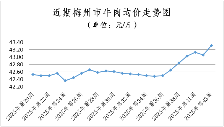 牛肉 | 元/斤 | 43.31 | 0.58% |
