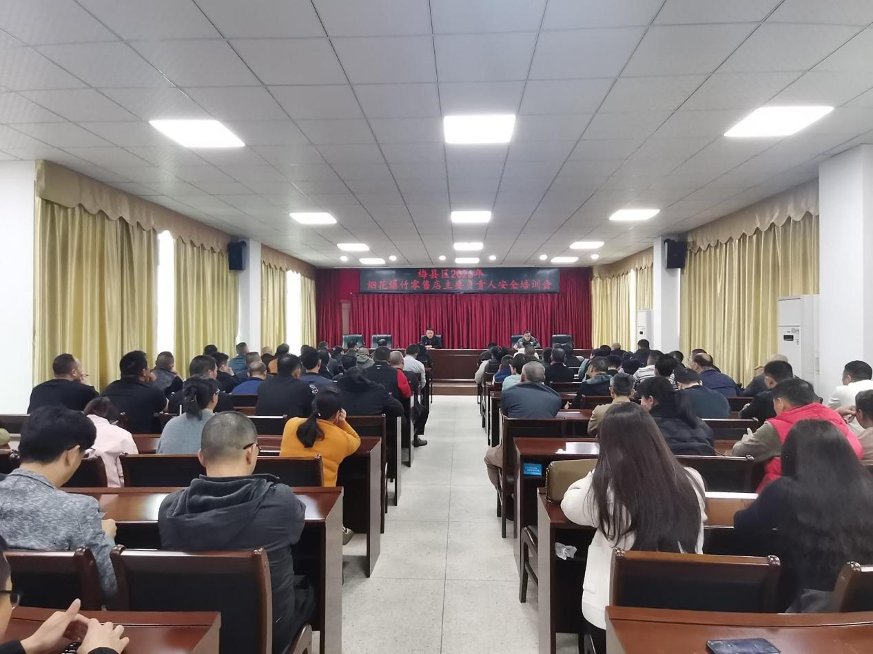 新春將至,煙花爆竹進入產銷旺季,各類風險交織疊加。為深入貫徹落實習近平總書記關于安全生產重要指示精神,統籌發展和安全,全面落實各級工作部署,筑牢煙花爆竹安全防線,梅縣區應急管理局于2025年12月中旬完成對2026年上半年97家煙花爆竹零售店審批許可工作,于2025年12月31日組織召開煙花爆竹零售店主要負責人安全培訓會,給全區97家零售店主要負責人上好崗前課,繃緊安全弦。