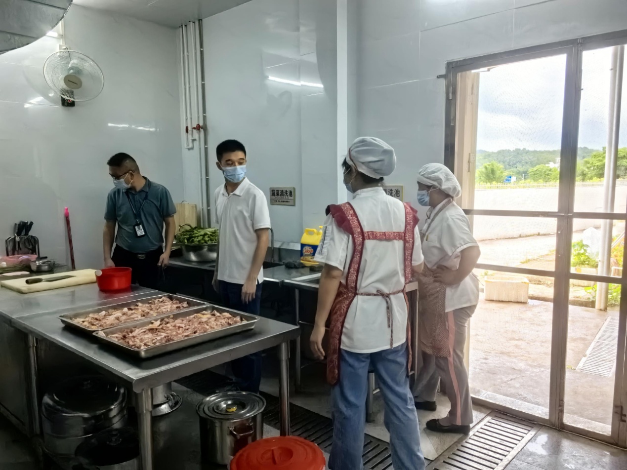 梅西鎮市場監管部門深入學校食堂后廚、傳遞窗口等重點區域進行以下方面的重點檢查:1.原料采購與儲存:核查食品供應商資質、進貨臺賬及索證索票情況,檢查糧油、肉類、調味品等食材的保質期及儲存條件,嚴防過期或變質食材流入餐桌;2.環境衛生與設施:檢查食堂操作間、就餐區環境衛生,核查是否存在地面油污積垢、垃圾桶未加蓋等問題;3.人員健康管理:抽查從業人員健康證持有情況,強調每日晨檢、佩戴口罩手套等個人防護要求,杜絕帶病上崗。經檢查,該校食堂各項安全指標均符合規范,未發現安全隱患。