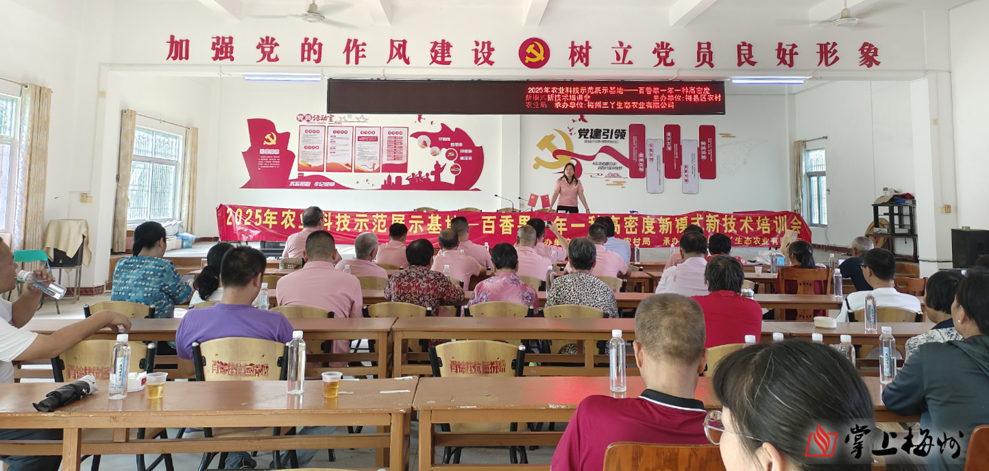 為積極推廣百香果高效種植技術,推動特色農業現代化發展,日前,由梅縣區農業農村局、梅州三丫生態農業有限公司主辦,梅縣區石扇鎮人才驛站協辦2025年百香果一年一種高密度新模式新技術培訓會在石扇鎮銀錢村黨群服務中心舉行。此次培訓面向全鎮百香果種植戶及意愿種植人員,旨在通過技術推廣促進產業提質增效。