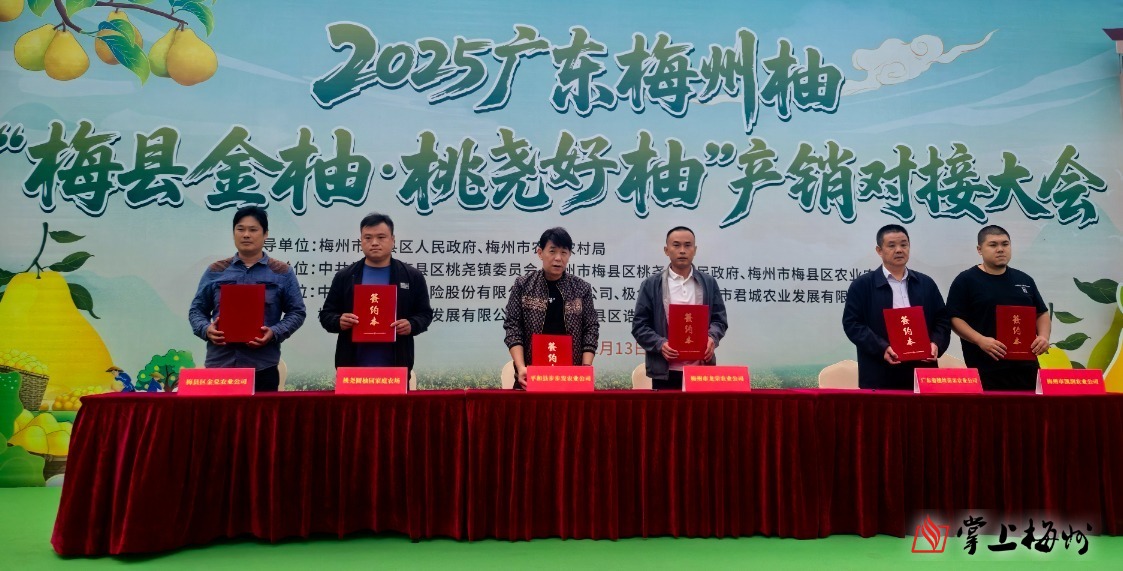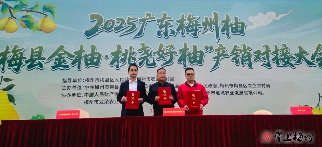 活動現(xiàn)場,通報了2025年“梅縣金柚·桃堯好柚”產(chǎn)量、品質(zhì)和營銷情況,并進行銷售推介;舉行了銷售簽約儀式和戰(zhàn)略合作簽約儀式,6家“桃堯好柚”種植經(jīng)營戶與6家采購商進行銷售簽約推動桃堯金柚產(chǎn)銷對接,極兔速遞、中國人民財產(chǎn)保險公司梅縣支公司與梅縣區(qū)桃堯鎮(zhèn)金柚協(xié)會簽訂物流保障、保險護航金柚產(chǎn)業(yè)發(fā)展戰(zhàn)略合作框架協(xié)議。