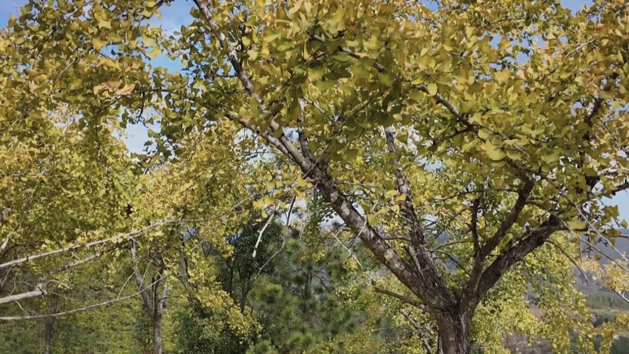 梅西鎮均田村黨總支書記余青:“我們這個銀杏基地一共種有(銀杏)成片的有28畝,散種的大約有一萬棵。”