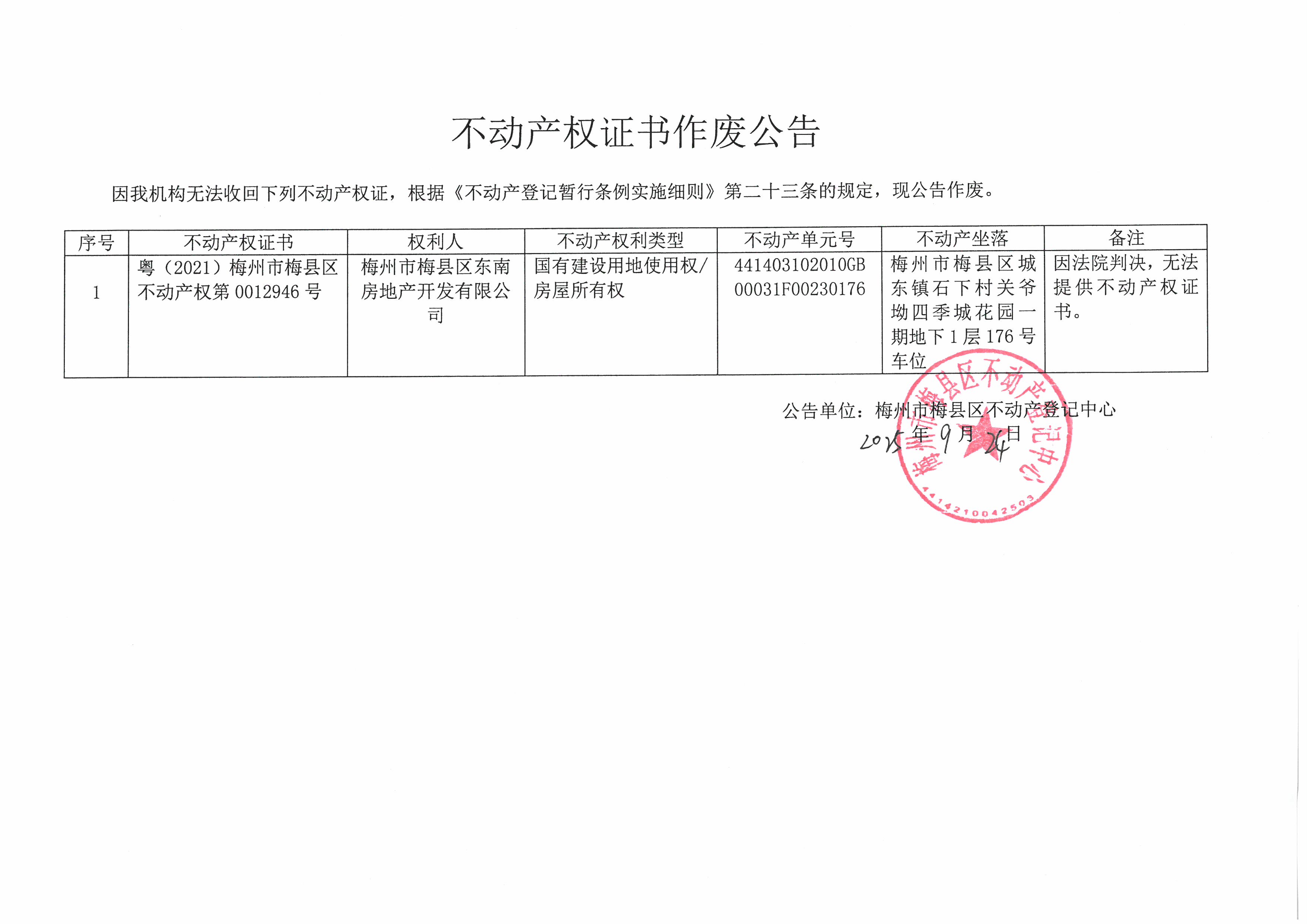 公告單位:梅州市梅縣區(qū)不動(dòng)產(chǎn)登記中心