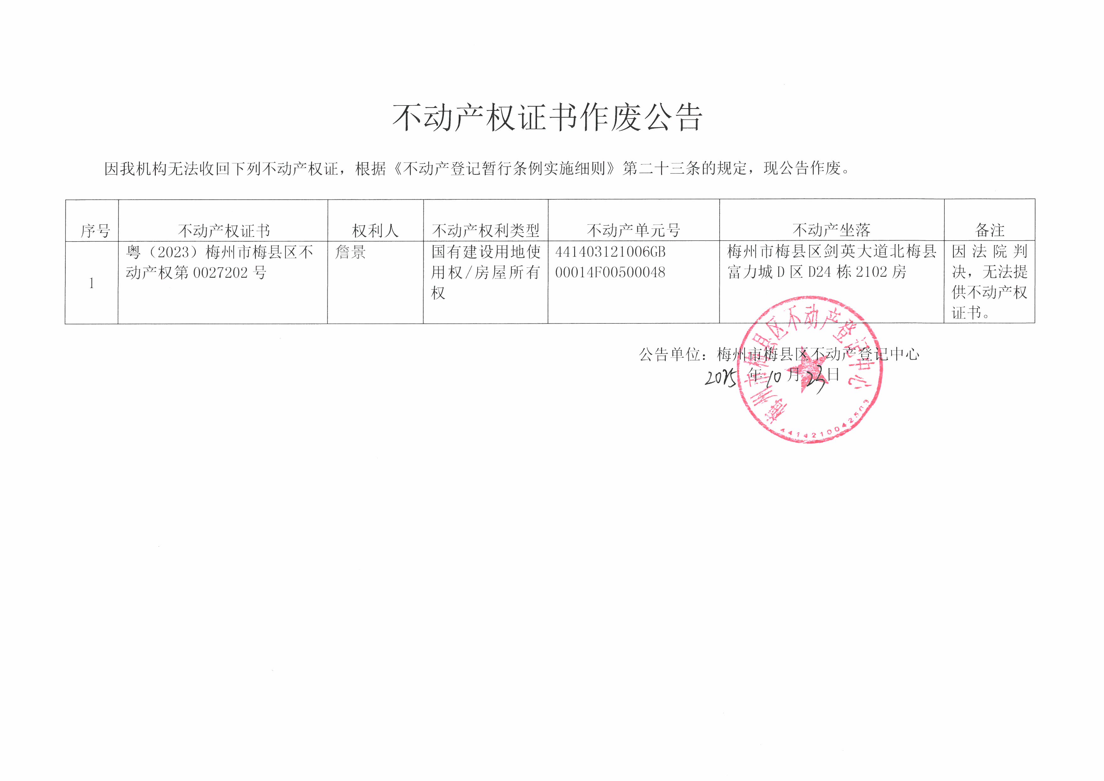 公告單位:梅州市梅縣區(qū)不動(dòng)產(chǎn)登記中心