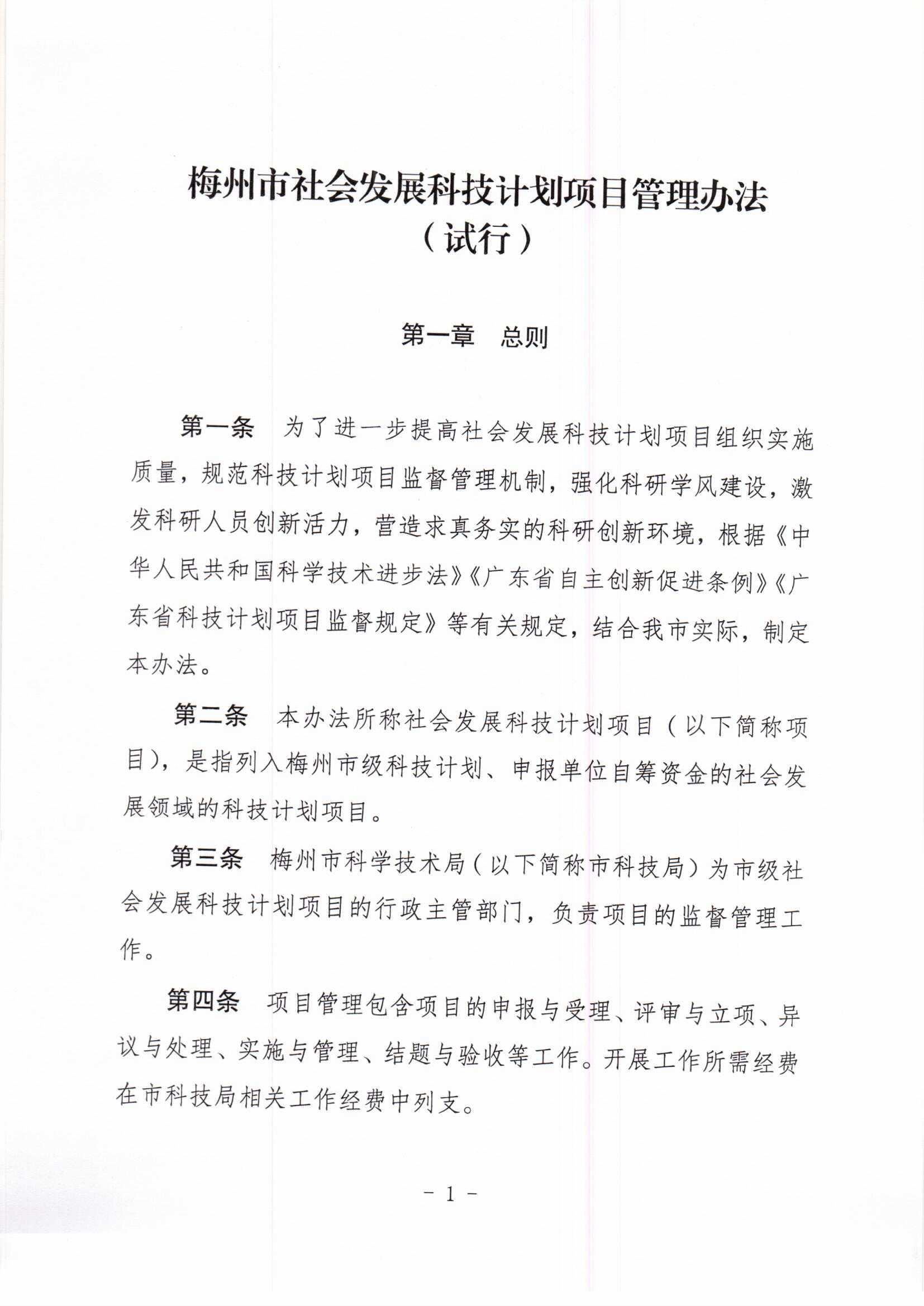 《梅州市社會發展科技計劃項目管理辦法(試行)》