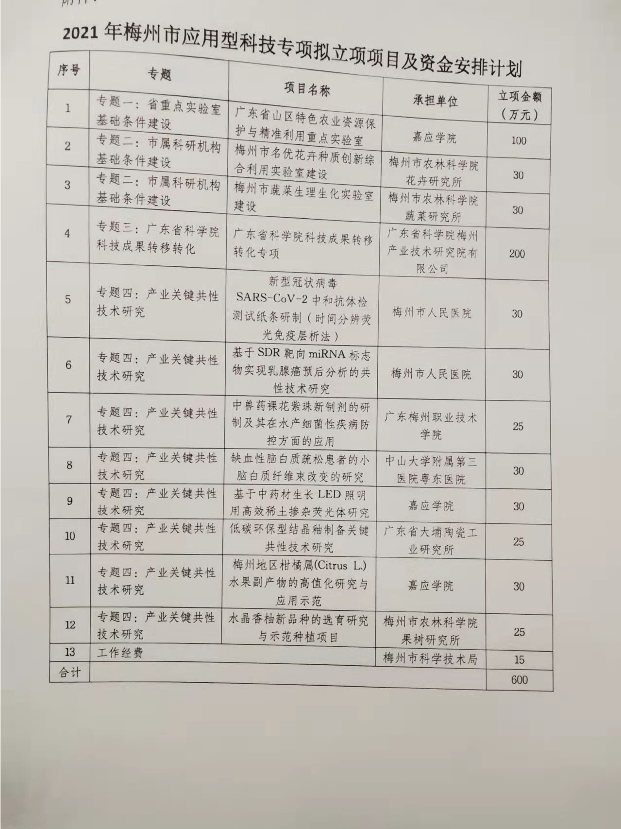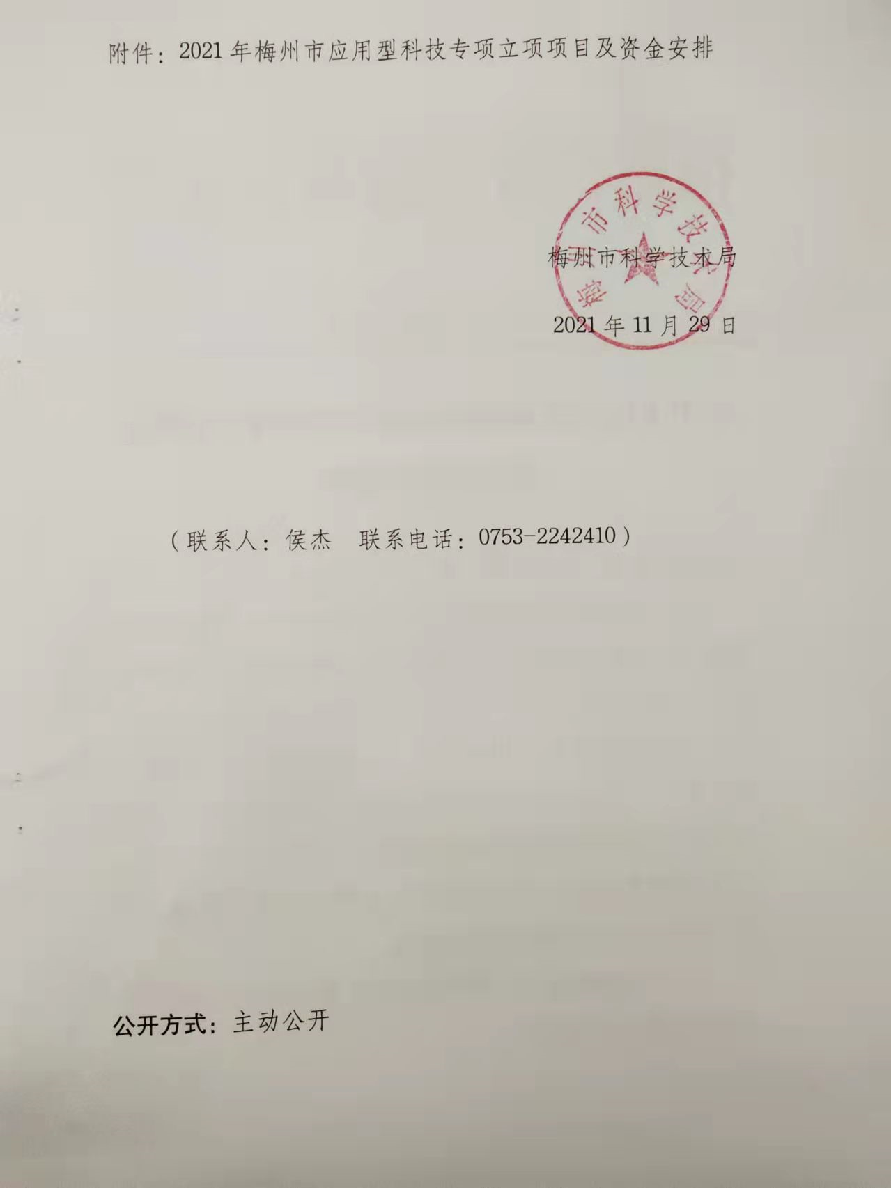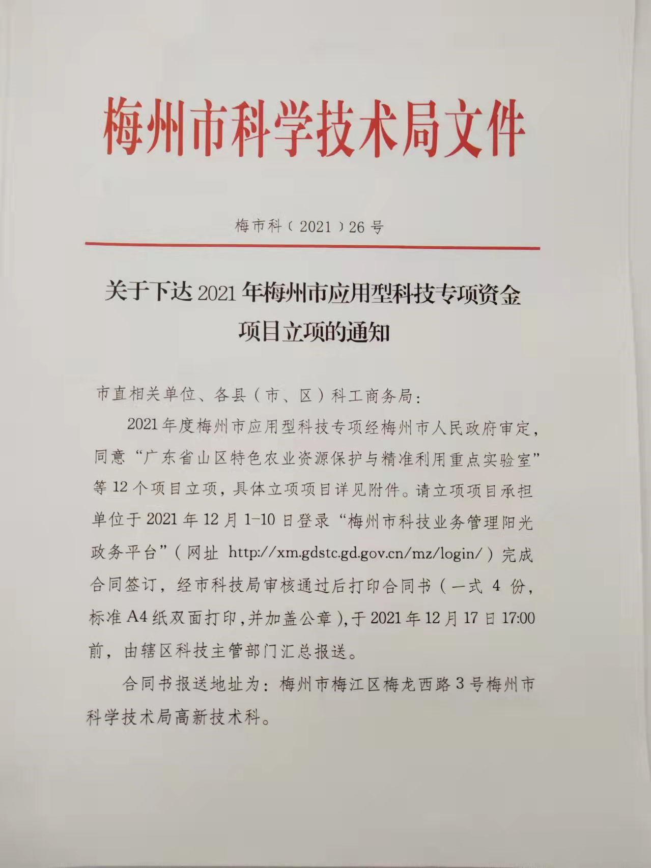 關(guān)于下達(dá)2021年梅州市應(yīng)用型科技專(zhuān)項(xiàng)資金項(xiàng)目立項(xiàng)的通知