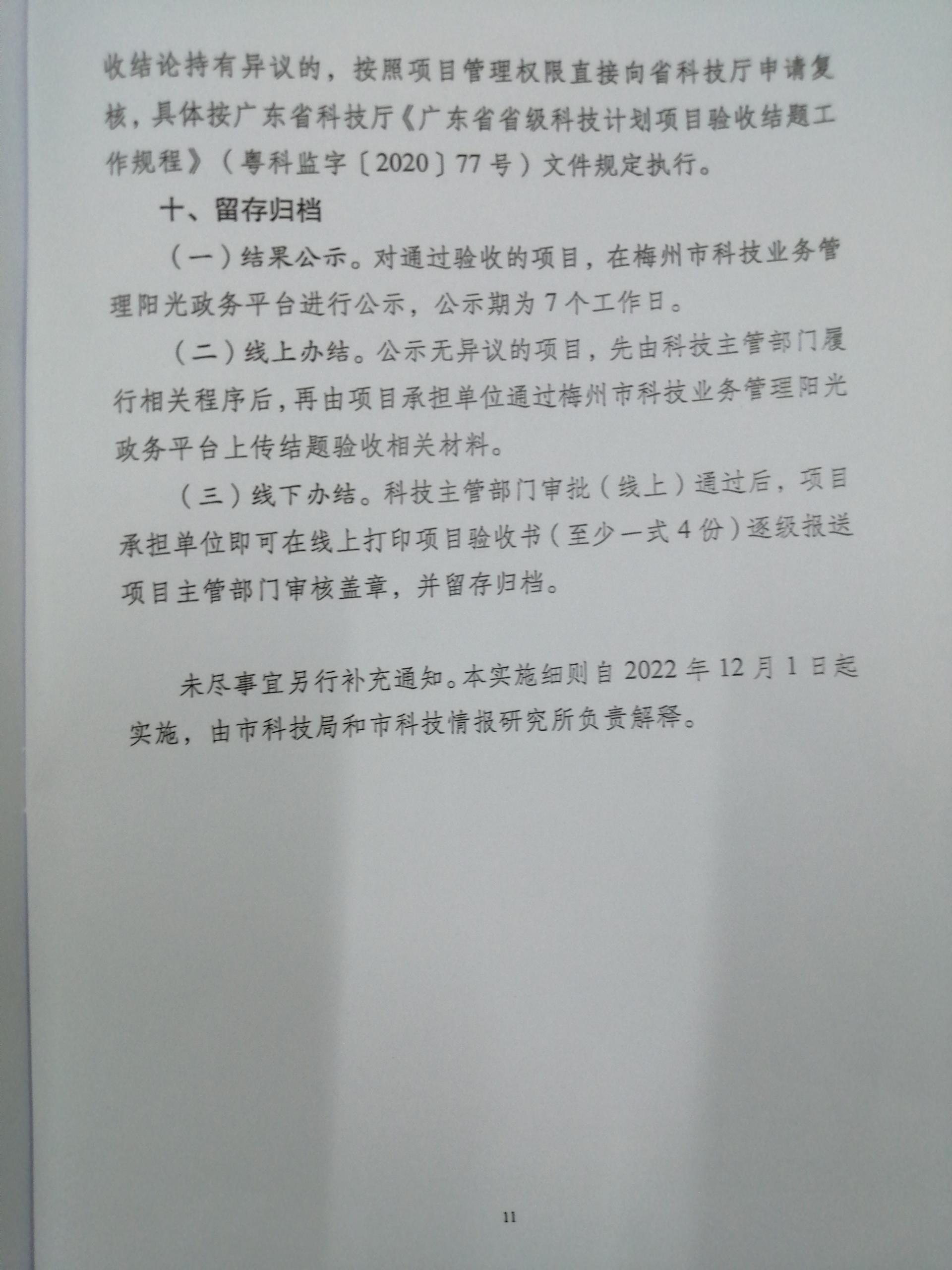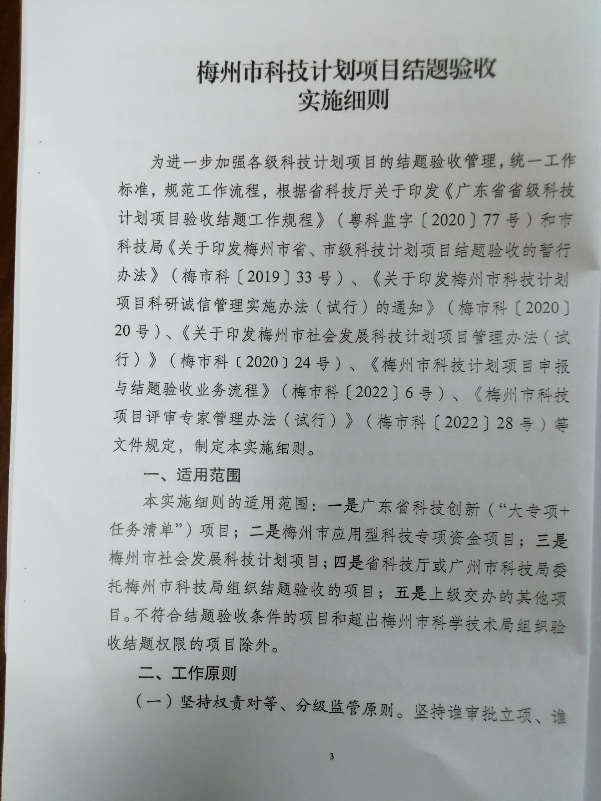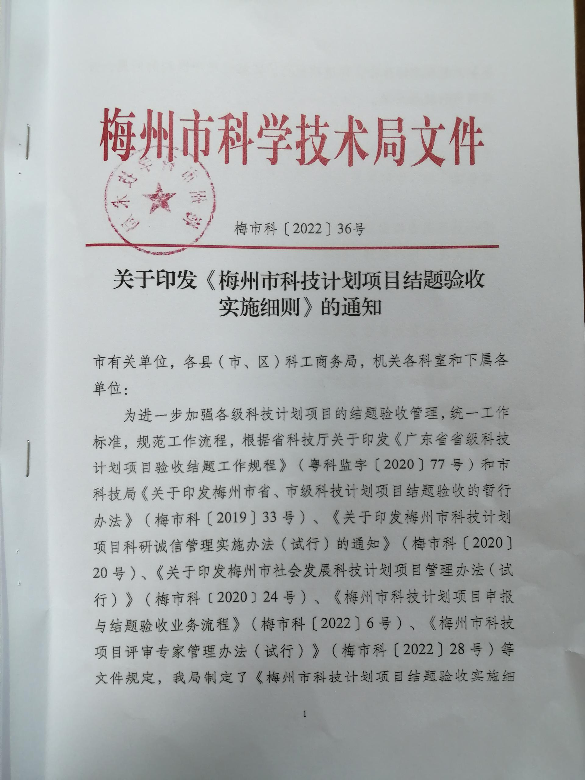 關于印發《梅州市科技計劃項目結題驗收實施細則》的通知