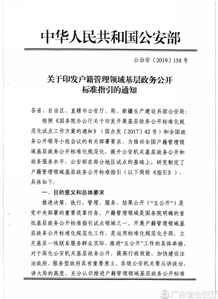 關于印發戶籍管理領域基層政務公開標準指引的通知