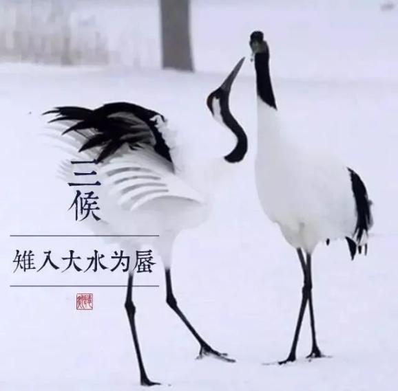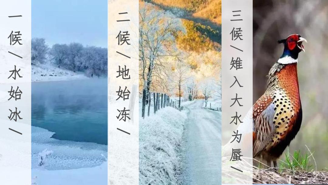 《月令七十二候集解》中記載,立冬分為三候:“一候水始冰;二候地始凍;三候雉入大水為蜃。”