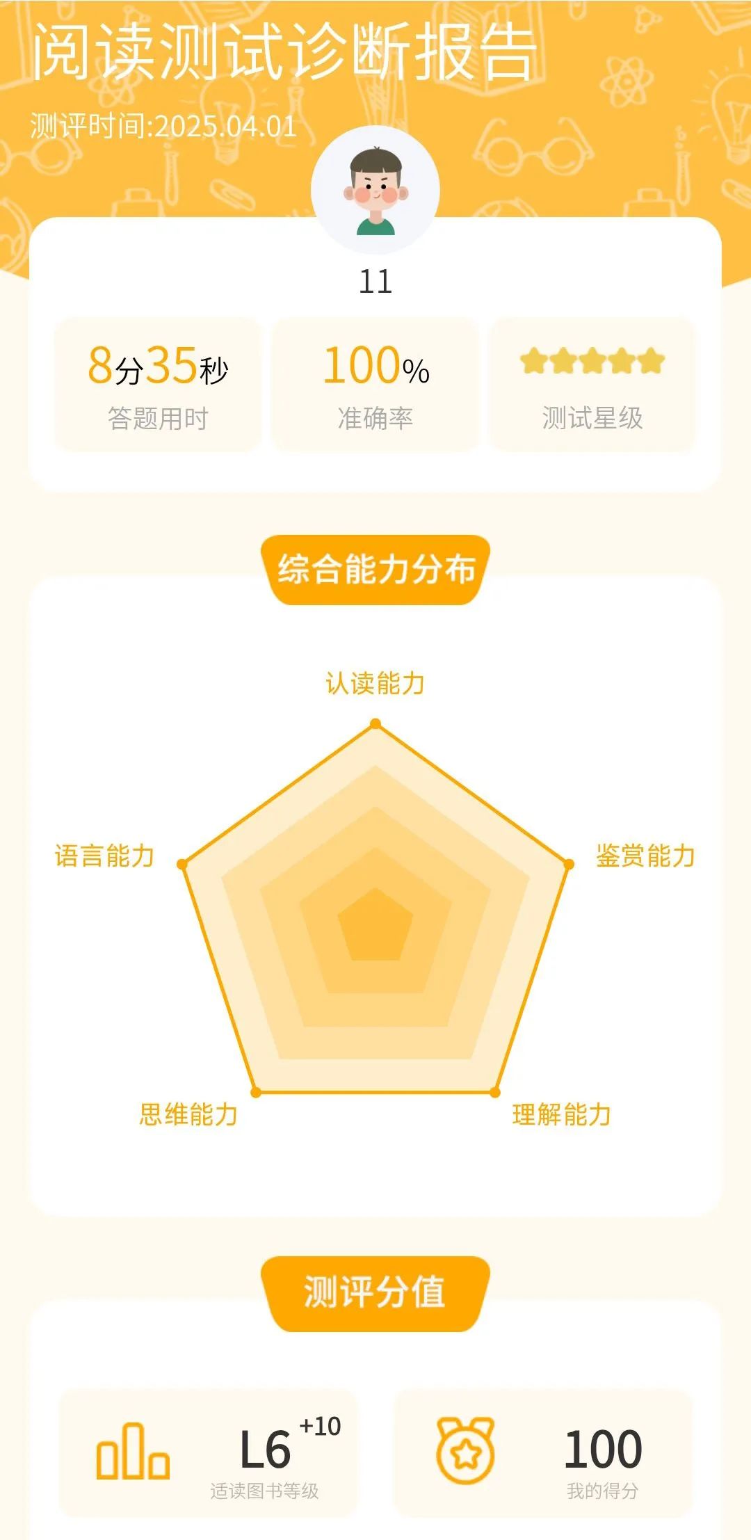 根據測評結果,評價出真實的閱讀水平,并匹配對應的級別。級別從低到高分為L0-L6七個等級。