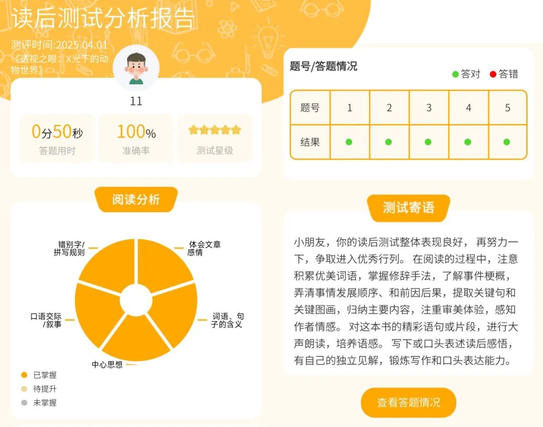提供基本信息。在線測評閱讀能力,生成“閱讀測試診斷報告”。