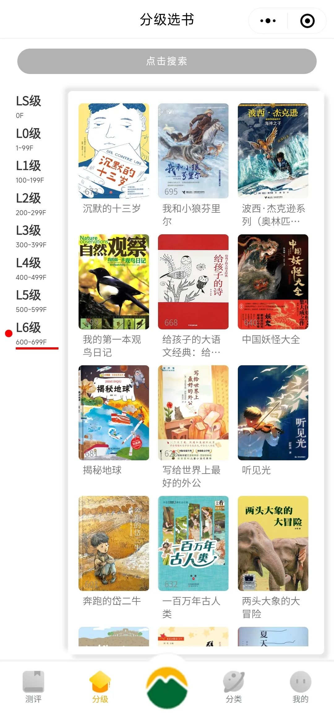我們已為適齡兒童挑選一批圖書,按難易度分級,可按L0——L6級尋書。