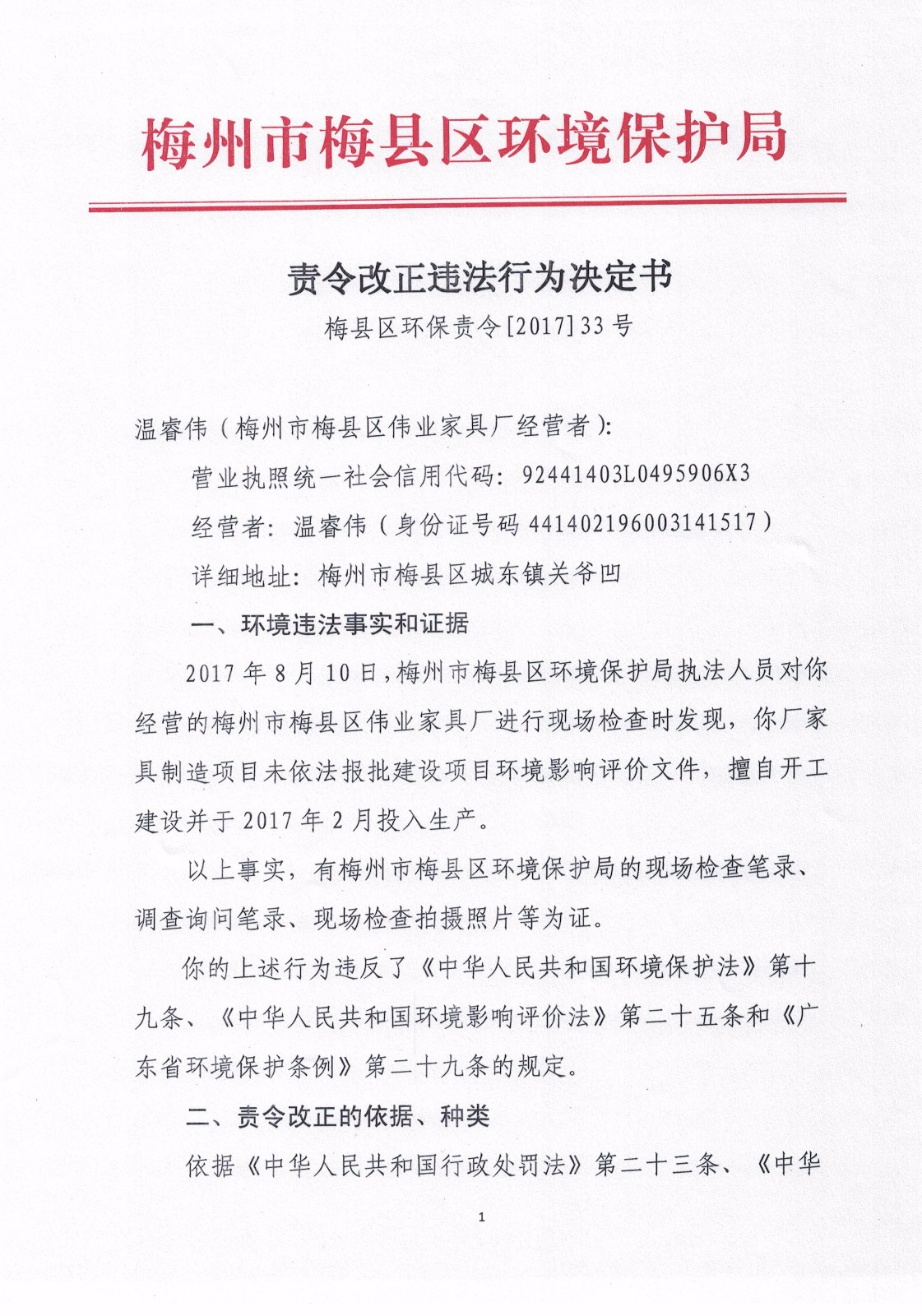 梅縣區環保責令[2017]33號