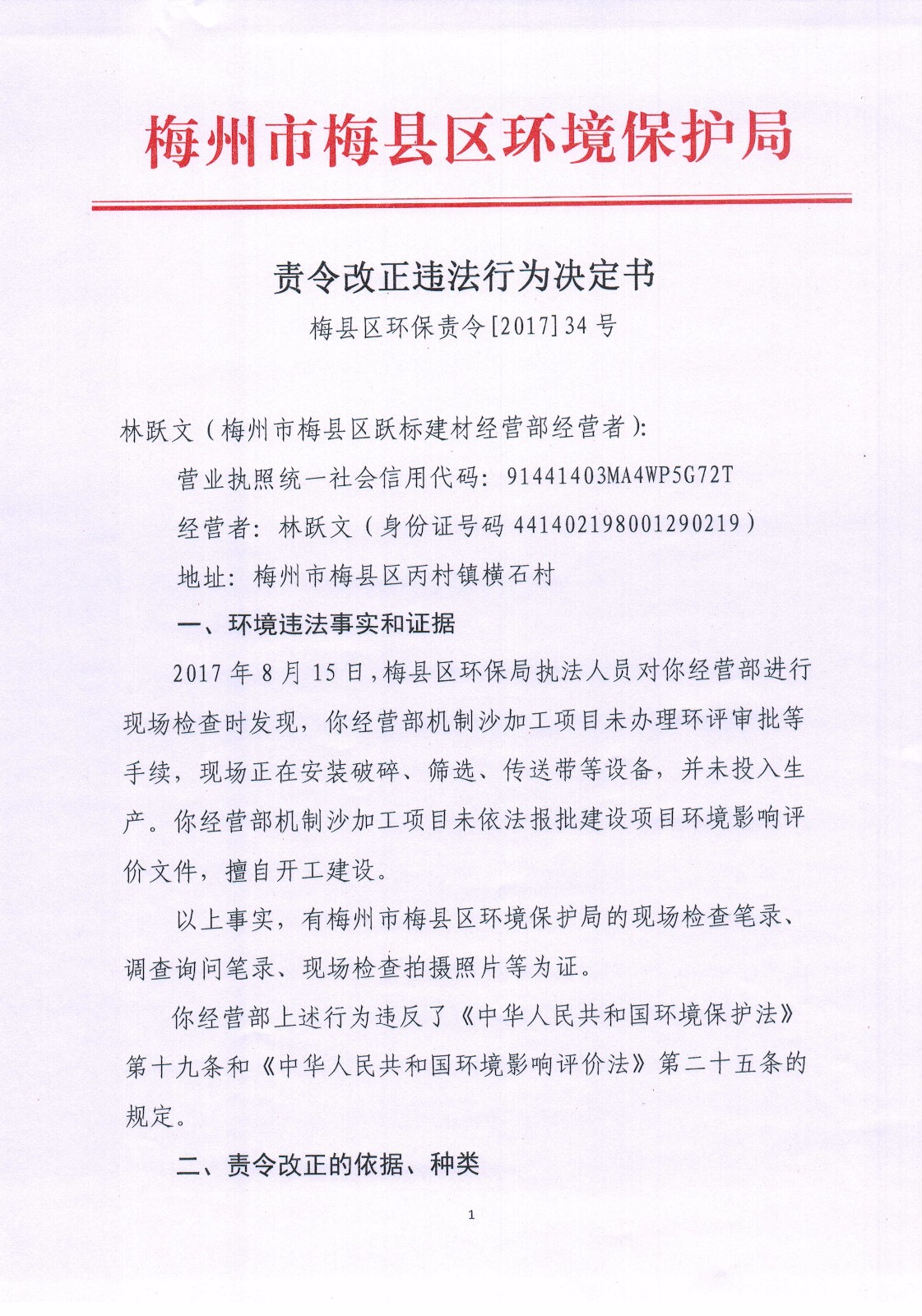 梅縣區(qū)環(huán)保責(zé)令[2017]34號(hào)