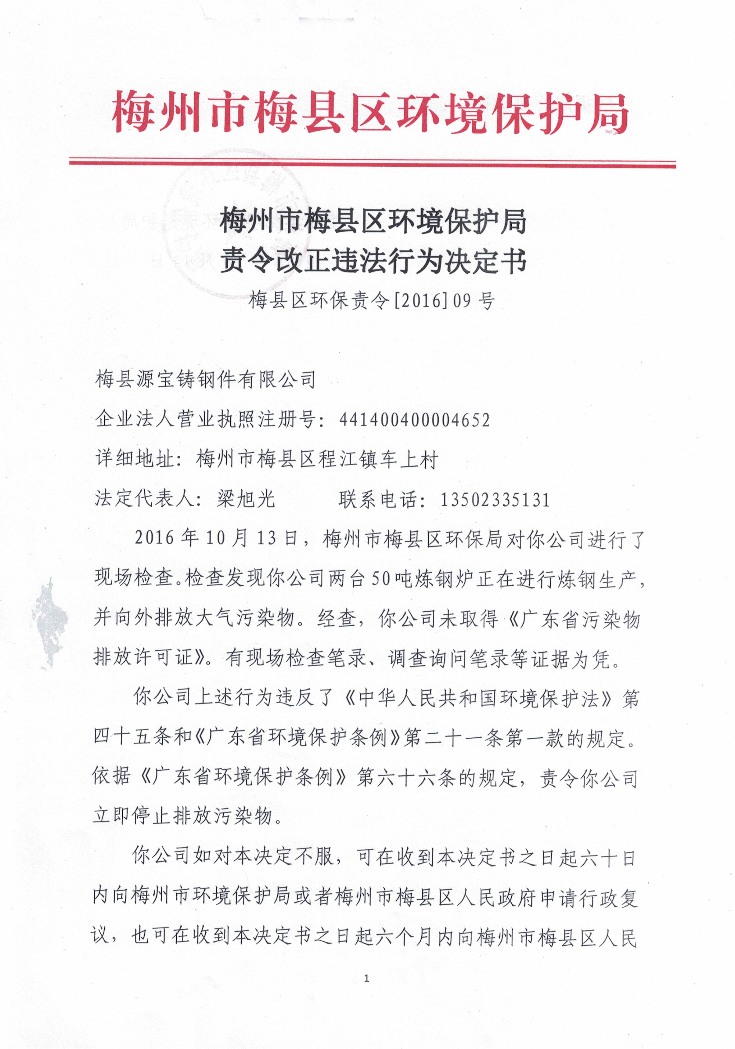 梅縣區環保責令[2016]09號