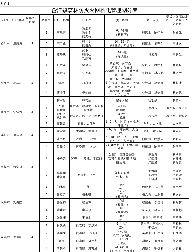 附件1.畬江鎮森林防滅火網格化管理劃分表