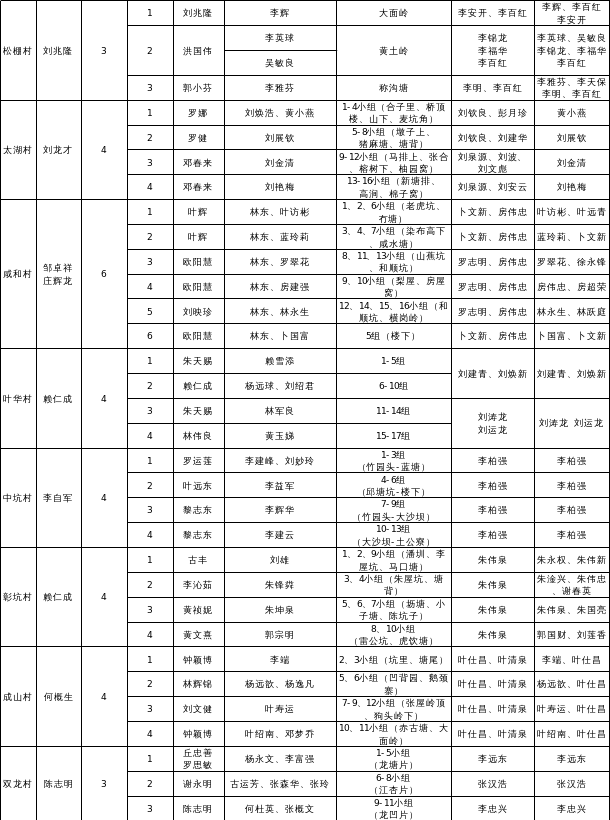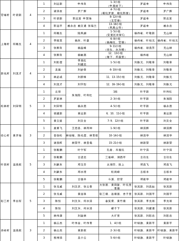3.駐村干部及村“兩委”干部、護林員按照網格責任,全面落實網格化管理,加強隱患排查整治和“五清”行動,并做好巡護、巡查工作。(網格責任人及網格責任區域見附表1)